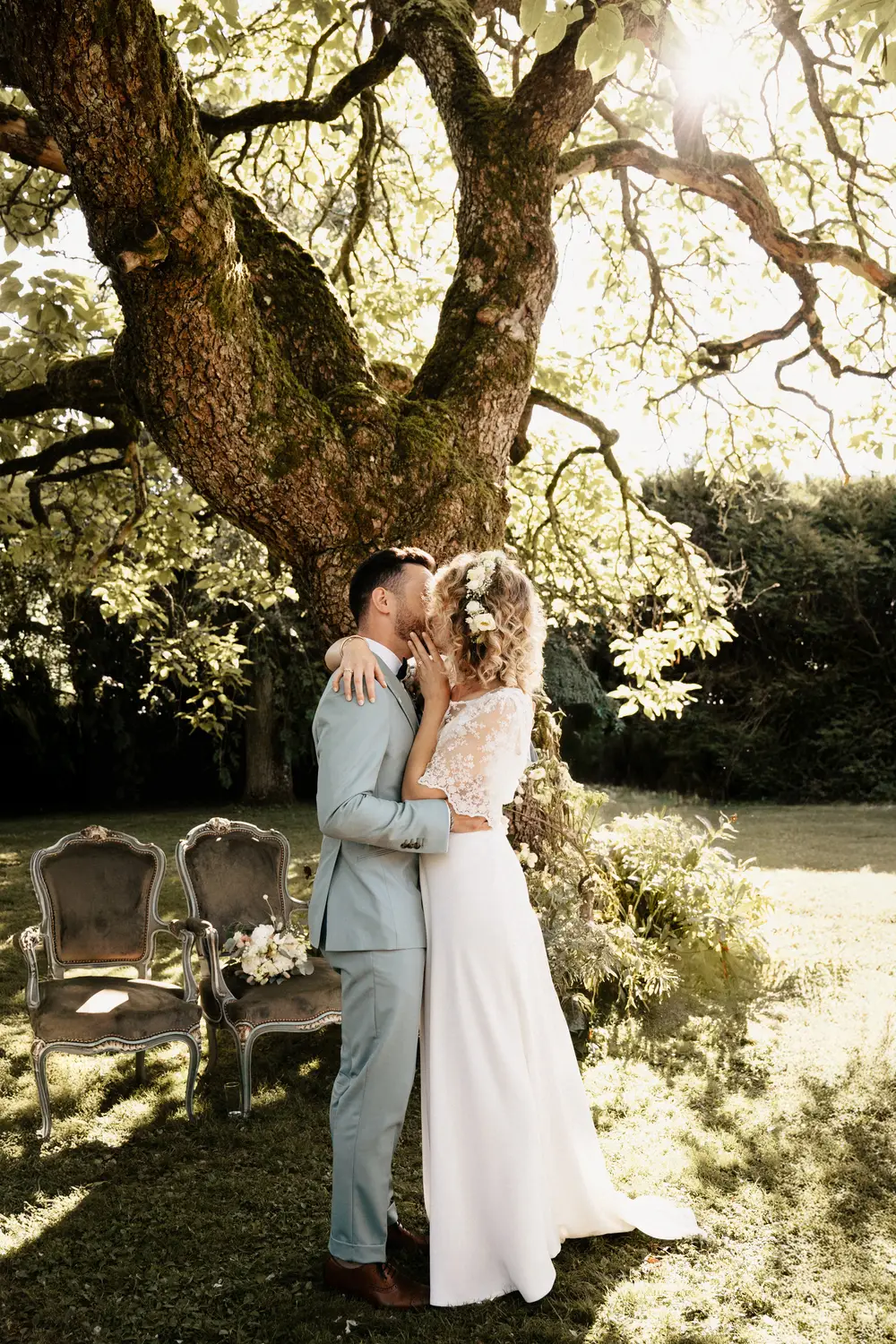 Des mariés qui dansent sous un saule pleureur